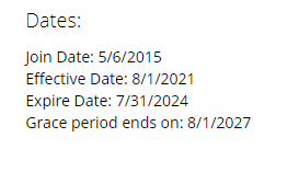 Expire Date: This is the end date of your current 3-year renewal cycle, or your renewal date.