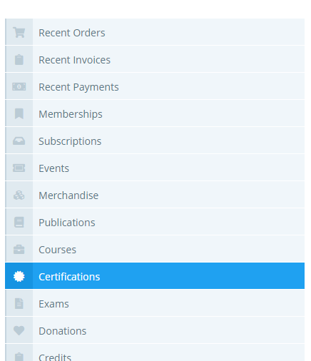 First, access the certification dates in your account by clicking on the "Purchases" tab located at the top of your screen, then click "Certifications" from the left menu.