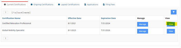 From here, you will see your certification(s), click "View" on the certification you would like to check.